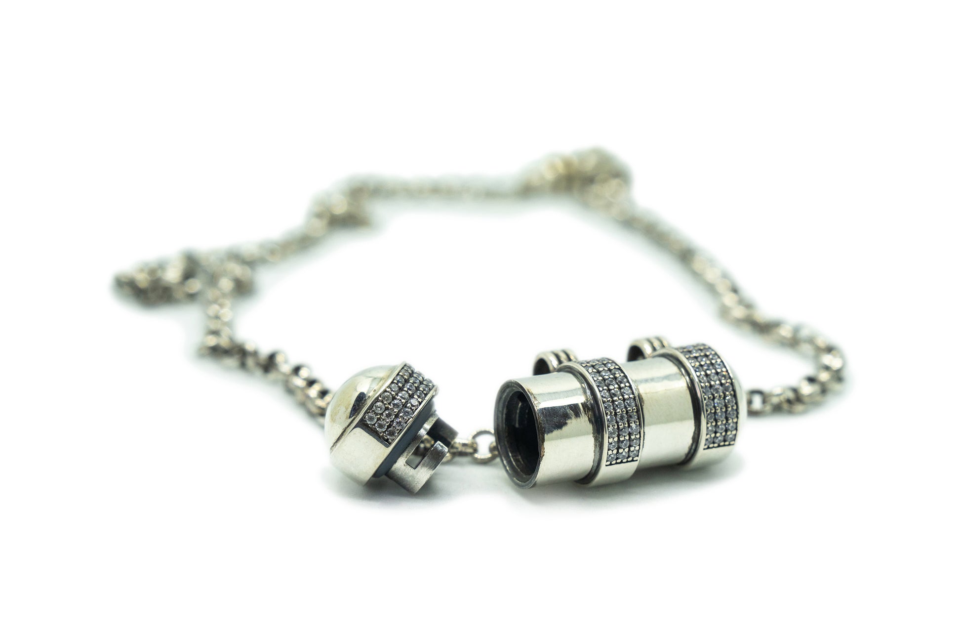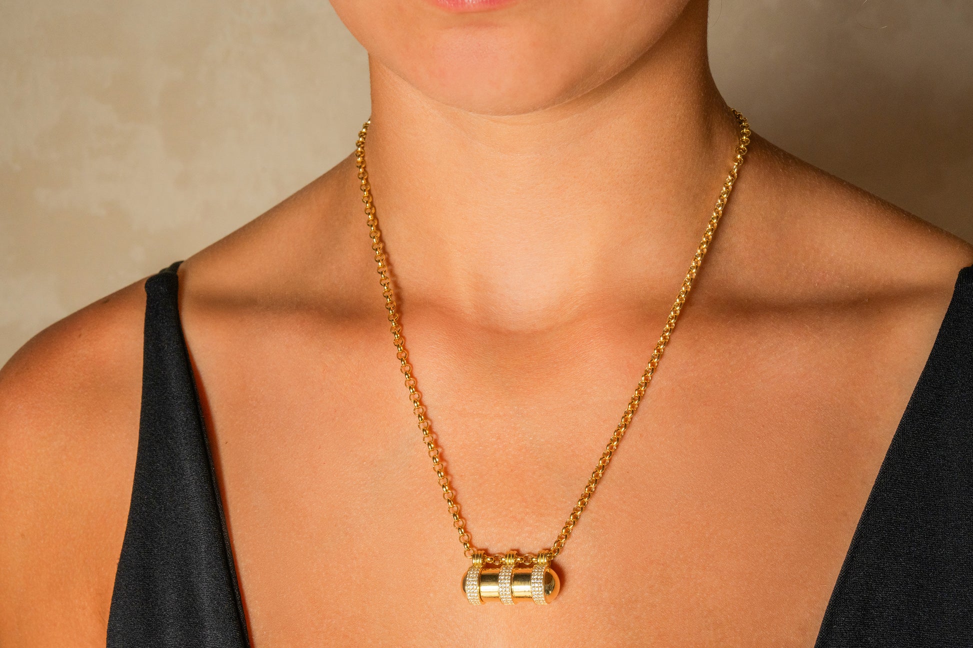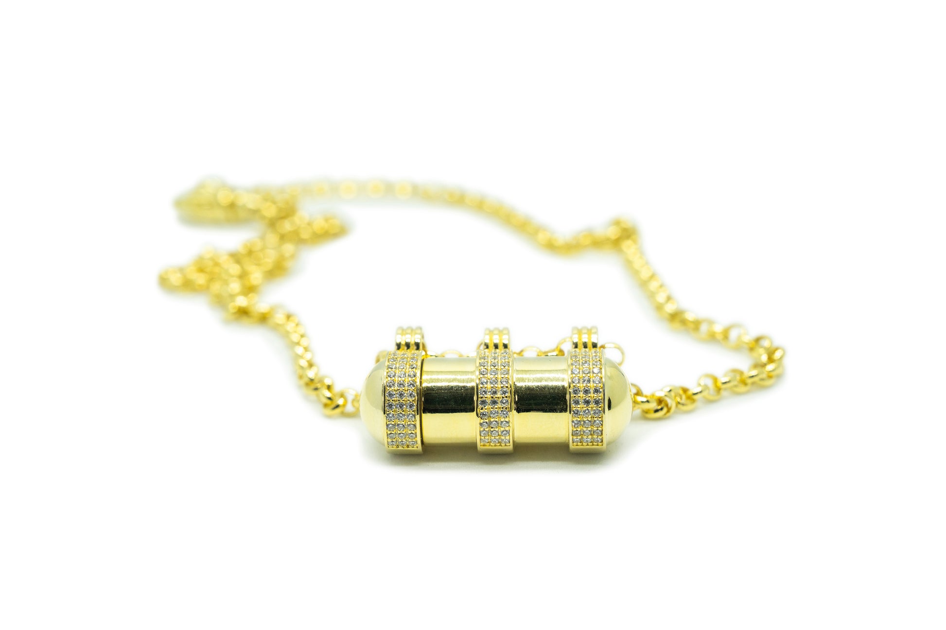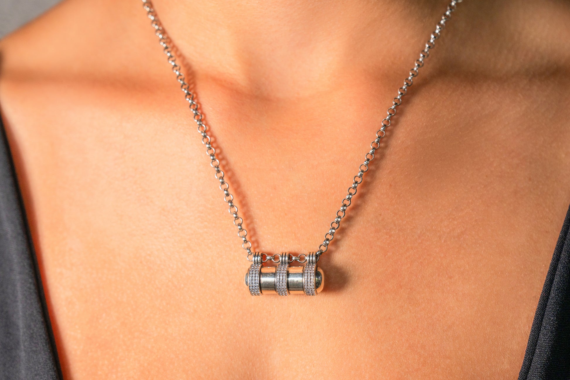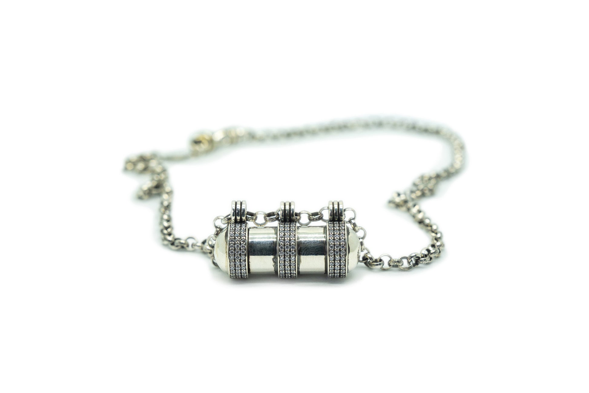 The Pavé Diamond Barrel-Shaped Kavacha, known as the Agraja Amulet, is a striking piece inspired by the founder's elder sister. "Agraja," meaning "elder sister" in Sanskrit, symbolizes wisdom and the enduring influence of family. Its elegant design features three bands of three rows, representing harmony, balance, and positivity—a number deeply meaningful to the founder. Perfect for any occasion, this amulet serves as a reminder of love and strength within family bonds. The Agraja Kavacha is a timeless celebration of family and inspiration, making it a meaningful gift for yourself or a loved one.