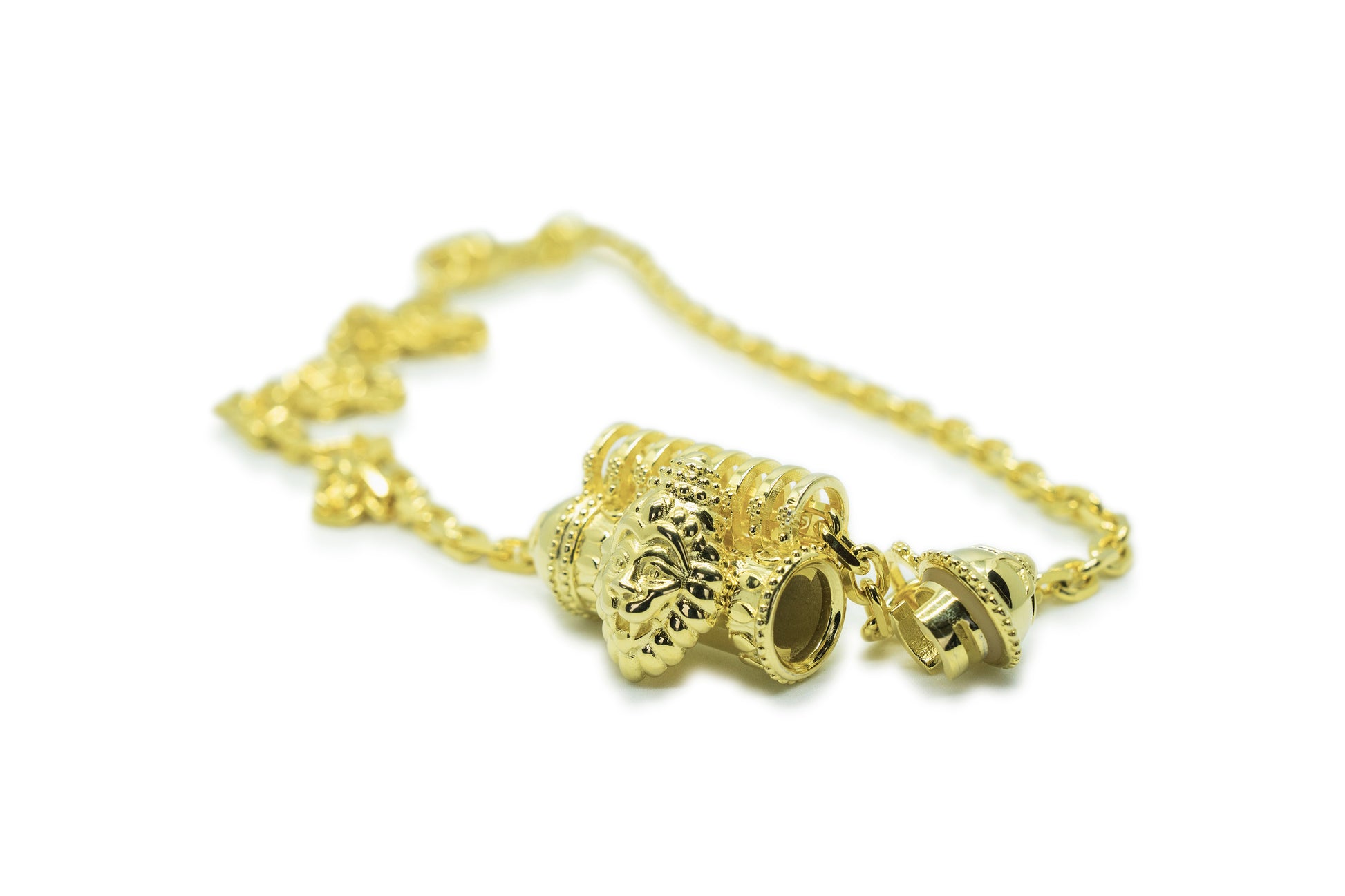 The Narasimha Kavacha is the cornerstone of the entire collection, marking the beginning of founder and designer Jayashri Triolo’s journey. From the outset, she sought the blessings of her spiritual teacher to design and create Kavachas, with this being the first piece she ever crafted. Narasimha, the protector of the universe, is an incarnation of Lord Vishnu, who descended to Earth in the form of a half-man, half-lion during the Krita Yuga, the Golden Age. This powerful avatar’s purpose was to restore peace and righteousness by vanquishing evil, making the Narasimha Kavacha the most significant and sacred design in the collection.